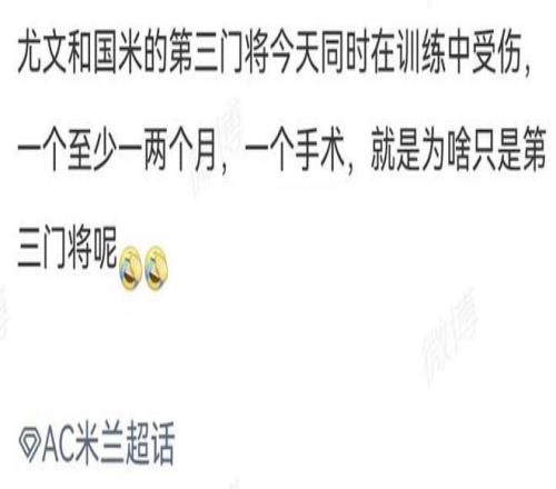 我不知道人是以一种什么样的心态来期盼其他俱乐部的球员受伤的。反正狗哥这么多年以来,从来没有这么想过。甚至如果是其他俱乐部的球员出现重大伤病,狗哥只会觉得可惜,毕竟能在意甲豪门效力的都是百里挑一的好球员,好球员受伤,怎么可能不可惜?
