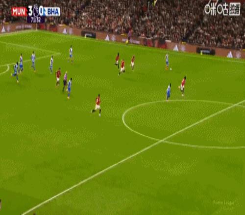 第34分钟,卡塞米罗弧顶处抽射破门,曼联2-0布莱顿