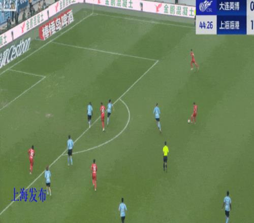 第45分钟,海港前场断球后制造威胁,皮球最终被没收