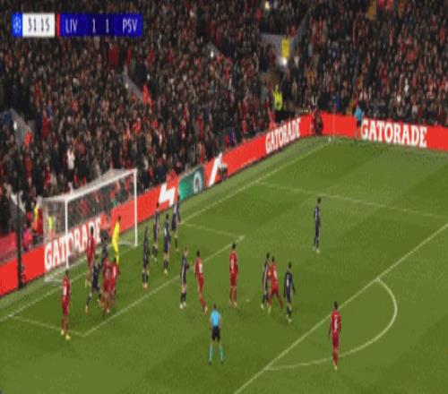 开场仅仅4分钟,利物浦被判了点球,一次角球防守,范戴克禁区高高举手挡下了皮球,随后佩里西奇主罚命中,帮助埃因霍温客场1-0取得梦幻开局。