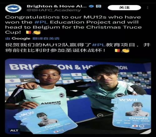 日前,布莱顿青训学院官方账号发布了一张照片,引爆全球,不单局限于足坛了:照片中,布莱顿足球俱乐部一线队日本籍球员三笘薰与一名小球员合影,二人手持类似球员卡的卡片。卡片上并不是球员头像,而是一个日本军人。经查,该日本军人名叫小野田宽郎,是第二次世界大战时的日本陆军少尉。